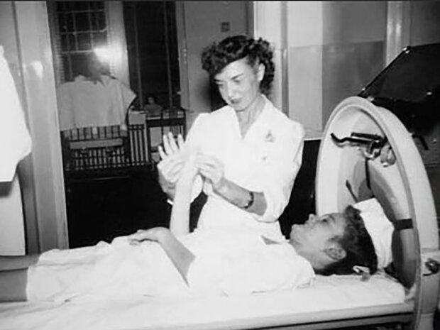 Z přístroje, uvnitř kterého se neustále měnil tlak, trčela jen její hlava. Paní Masonová byla varována, že její dcera nebude žít déle než rok.