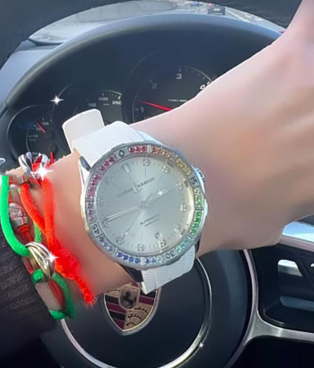 Bílý pásek je z aligátoří kůže a celková hodnota, jak uvádí portál Cellini, se pohybuje kolem 330 tisíc korun.