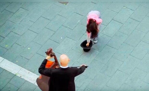 Hudebník ve smokingu vyšel na jednom z náměstí ve městě. Muž klidně nasadil svůj dárcovský klobouk a začal hrát. Na ulici byla tomuto muži věnována první pozornost od dětí. Jedna dívka se odvážila, šla k neznámému a vložila do klobouku pár drobností.