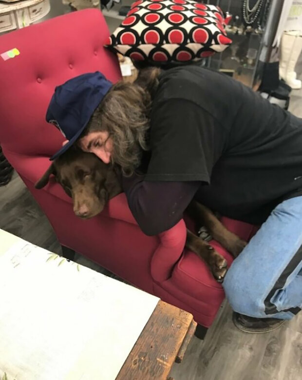 Nikolos je bezdomovec, ale pracuje na částečný úvazekve Start Rescue Resale Store, obchodním domě Sherman Oaks, který financuje adopci zvířat.
