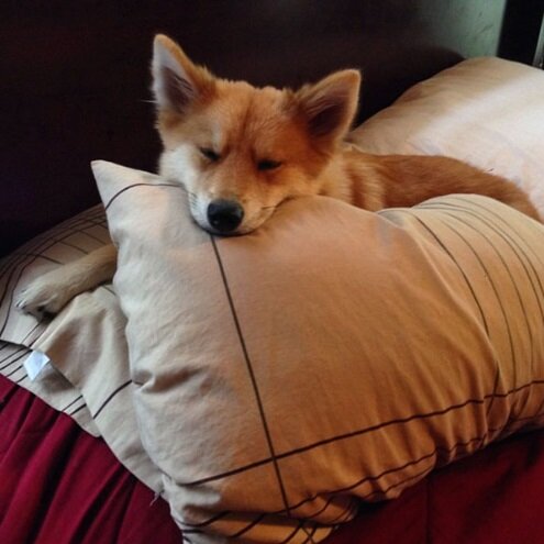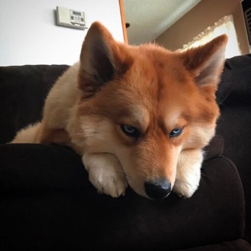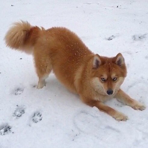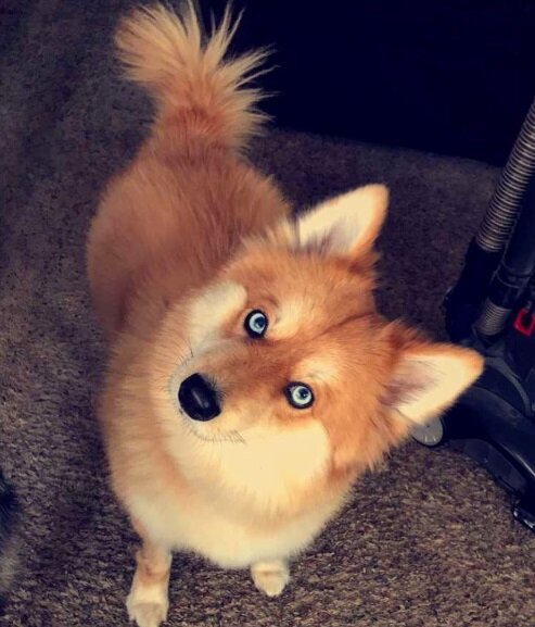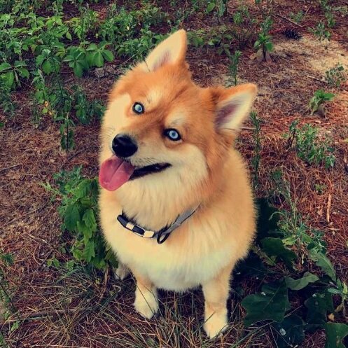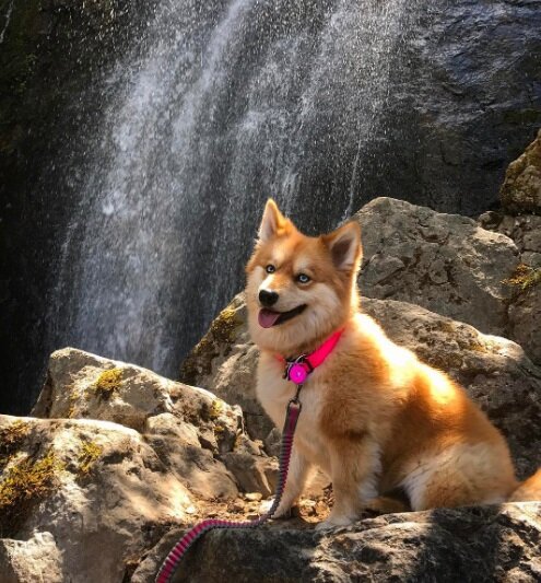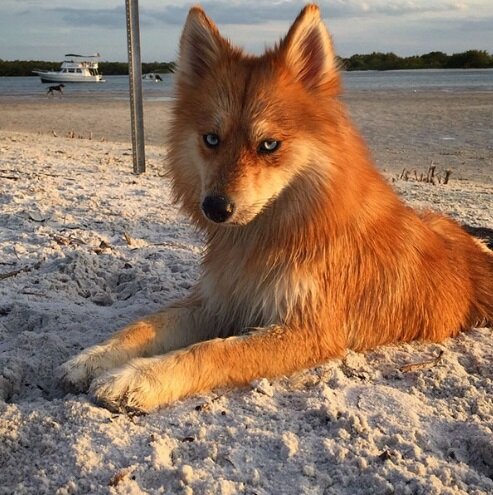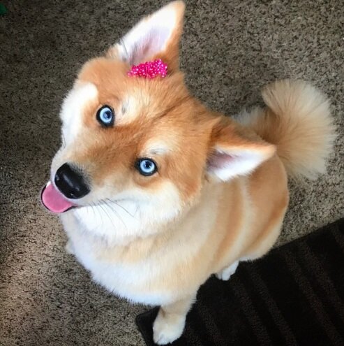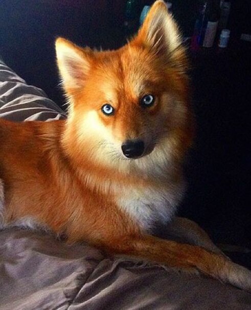Mia je křížencem pomeraniana a huskyho, ale spíše se podobá zrzavé lišce. Ohnivý kožíšek společně s pronikavě modrýma očima z ní udělaly hvězdu internetu.