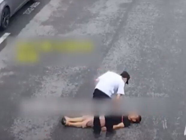 Obyvatelé Suzhou (provincie Ťiang-su, Čína), kteří viděli muže, který ležel uprostřed silnice, předpokládali, že je tento muž nemocný.