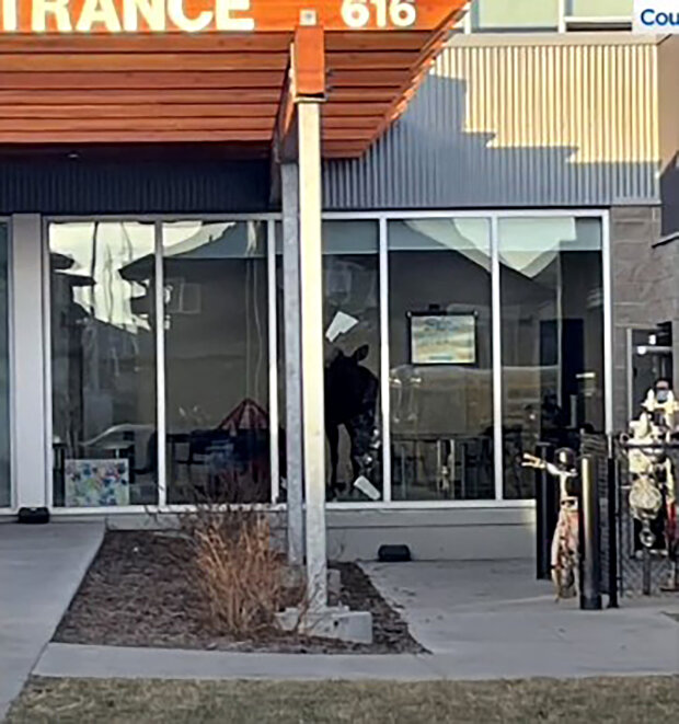 Uživatel Pat Dubois, který zveřejnil fotografie na Twitteru, řekl, že nezvaný host se zřejmě zranil.