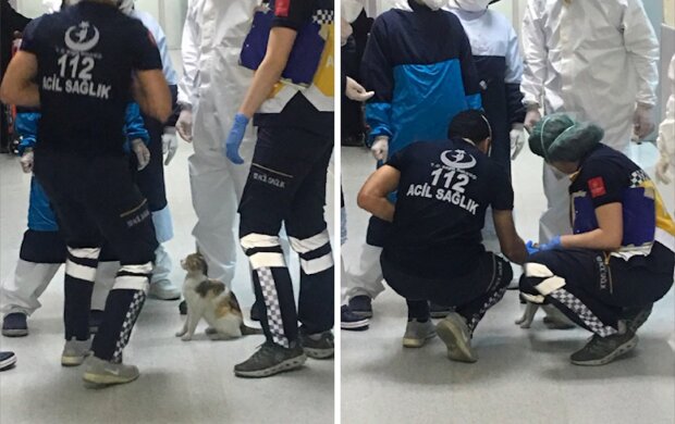 Autorem obrázků je Merve Ozkan, byly pořízeny v jedné z istanbulských nemocnic. Kočka přinesla kotě a lidé se okamžitě shromáždili. Lékaři měli zkušenosti a intuici, aby pochopili, že je tu zvíře z nějakého důvodu. Zatímco někteří zavolali veterinární kliniku, jiní provedli počáteční vyšetření kotěte a někdo matce nalil mléko a do něj dodal chléb.