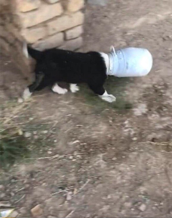 S obtížemi bylo stěně, které mělo potíže, chyceno a pomohli mu zbavit se plechovky. Poté změnil svůj postoj k lidem. Pejsek začal vrtět ocasem a olizovat spasitele.