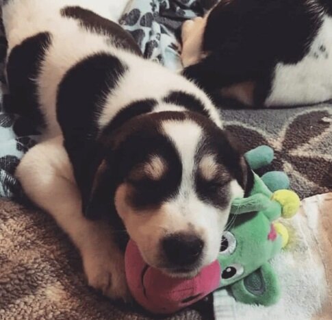 “To jsme vůbec nečekali. Naše fenka včera vrhla. Malinkaté kravičky!” napsala Katie.