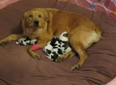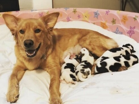 Když se fenka zlatého retrívra jménem Rosie dostala do rukou dobrovolnické organizace Neuse River Golden Retriever Rescue, která se zabývá hledáním domovů, měla již těsně před porodem. Dobrovolníci byli ráda, že jejich pomoc přišla právě včas.