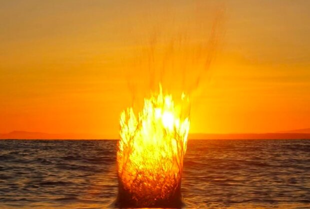 Pokryv od kamene, kterého hodili do vody při západu slunce