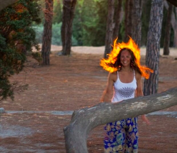 Oheň-fotka: odraz zapadajícího slunce ve vlasech.