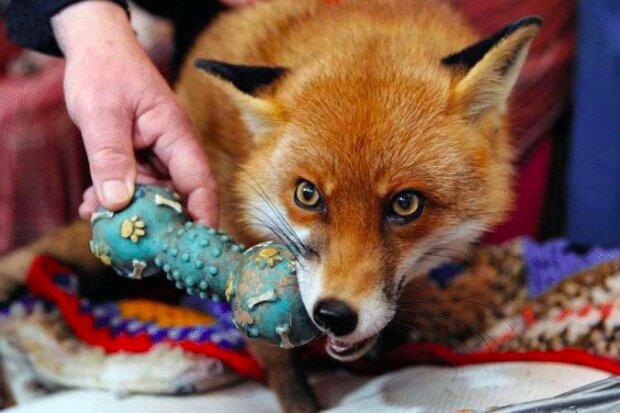 1. Liška Roxy ji krmivo pro psy, Nuneaton, Yorkšir, Velká Británie.