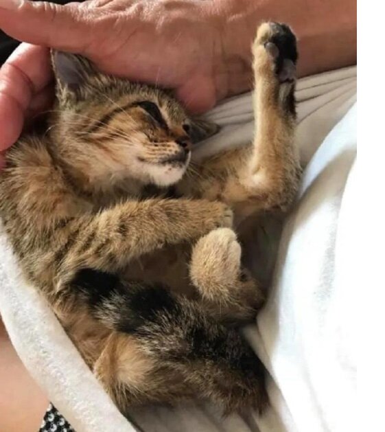 Samozřejmě, že se malé kotě běželo najíst. Dokonce se ani nelekl, když se klec zavřela. Soustředil se jenom na jídlo. Když ho z klece vyndali, chtěl trochu něhy. A to Carmen Dojalo.
