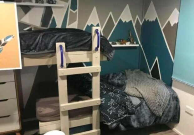 V dětském pokoji je patrová postel a pohodlný stůl, na kterém budou chlapci moci plnit školní úkoly. Také v domě je koupelna.
