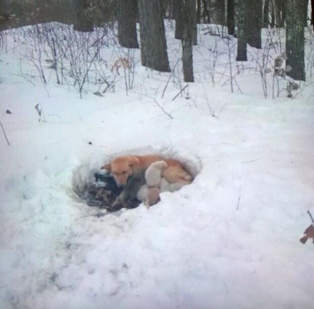 V lese náhodní jdoucí viděli psa, kolem kterého leželo šest novorozenců. Bydleli ne v domě, ale přímo uprostřed lesa, ve studeném sněhu.