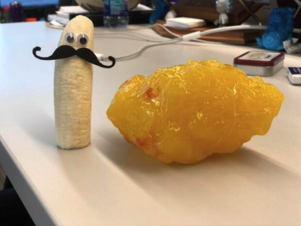Tak vypadá půl kilogramu lidského tuku, banán pro srovnání