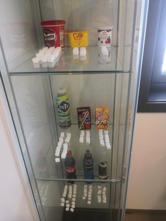 V kanceláři u zubaře je ukázka kolik cukru je obsaženo v jednotlivých nápojích