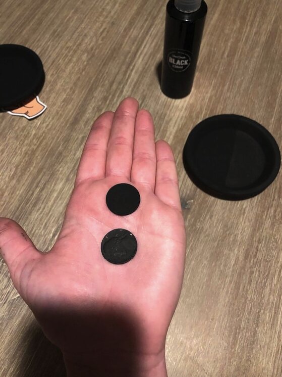 Skvrna obyčejné černé barvy a speciální materiál, který neodráží světlo a vypadá jako malá černá díra v prostoru
